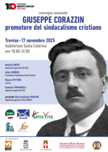Giuseppe Corazzin, nato ad Arcade (Treviso) il 4 marzo 1890, a soli diciotto anni era già “propagandista” e poi segretario dell’Ufficio cattolico del lavoro, un percorso analogo a quello del giovane Giulio Pastore. L’ingiustizia che vedeva diffusa nelle campagne venete lo spinse a farsi promotore di leghe contadine di resistenza e a invitare i suoi coetanei a entrarvi e a «opporre se occorre lo sciopero all’esosità di un capitalista». Erano posizioni molto avanzate per l’epoca ma Corazzin poteva contare sull’appoggio del suo vescovo mons. Andrea Giacinto Longhin. Così, nel 1910, anticipando i tempi, fondò a Cittadella il primo sindacato interdiocesano dei lavoratori della terra. Dopo l’interruzione dovuta alla chiamata alle armi, in Libia e nella Grande Guerra, Corazzin riprese l’azione sindacale dando vita alla Federazione Italiana Lavoratori Agricoli. Trasferitosi a Milano nel 1917, acquisì subito la fiducia del Cardinal Andrea Carlo Ferrari e rafforzò il legame con Achille Grandi e Giovanni Battista Valente contribuendo alla fondazione della Confederazione Italiana del Lavoro (Cil) di cui assunse la carica di vicesegretario. Ben presto, alla prospettiva di diventare un dirigente nazionale, preferì l’obbedienza al suo vescovo che lo chiamò a occuparsi dei contadini trevigiani martoriati dalla guerra.